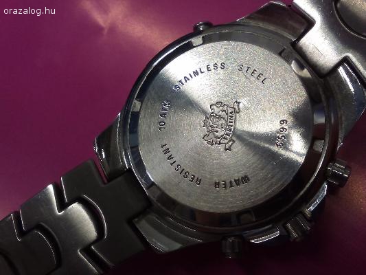 Új: NemTöbbfunkciós kronográf Férfi karóra, stopper és ébresztő funkcióval, dátum kijelzős. Full Rozsdamentes body! W. R. 100 M (teljesen vízálló) egy teljes polír után újszerű! Új elem!