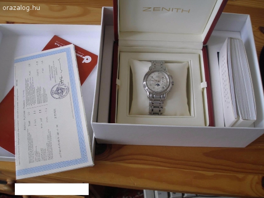 Új: NemEladó, kitűnő állapotban lévő Zenith El Primero Chromaster valamennyi papírjával, COSC tanusítvánnyal, dobozával első tulajdonosától. Évjárat: 2000, ref. szám: 02024041001